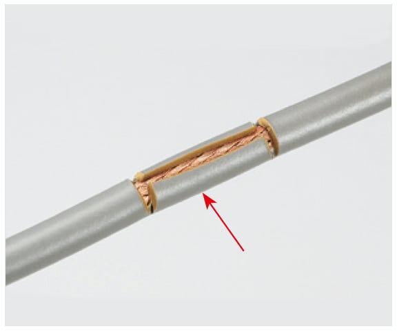 CO2雷射不會被金屬吸收(會反射),不用擔心不小心切到線芯。可以確實只切割被覆,有助於減少不良品,提升品質。