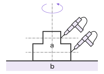 將目標物放在正圓形度測量儀的旋轉平台並固定。將探針抵住目標物並使旋轉平台旋轉,量測各量測點。