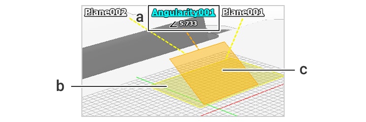 量測在指定直線及平面為90°以外時,指定「對基準(做為基準的平面、直線)的正確傾斜程度」的傾斜度。