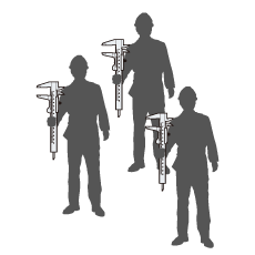 - 在量產的作業現場,可以事先製作專用的夾具。如需長期使用,也必須注意因夾具磨損、髒污等造成的誤差。除了進行定期檢查之外,還必須事先決定管理方法。