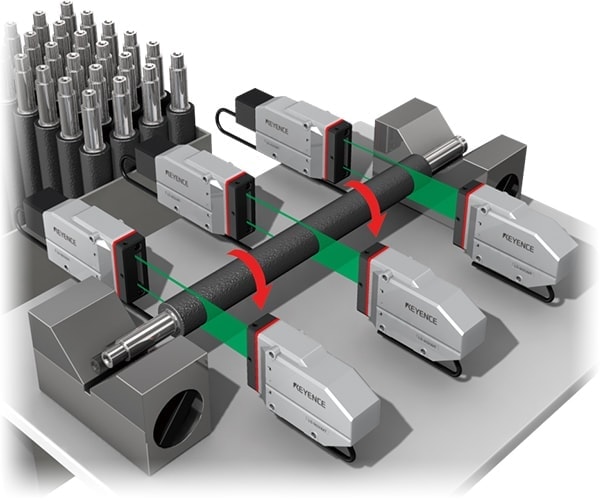 LS系列的量測值不會因受工件的材質和表面光澤的影響而出現偏差,因此在滾輪的量測方面有眾多使用實績。透過量測滾輪兩端,不但可以量測偏心,還可量測傾斜。
