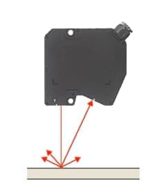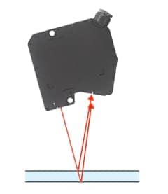 使用雷射位移計量測目標物時,需要用接收器接收來自目標物的反射光。三角測距方式的測量儀中,會依據目標物的表面狀態傾斜安裝感測頭,以確保能夠適當接收反射光。