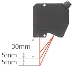 光軸區域圖是體現光從發射器到接收器的路徑的圖。若是治具等進入該區域,則光將無法到達目標物或接收器,導致無法量測。