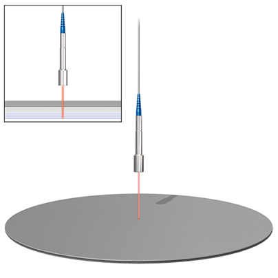 微型光譜干涉雷射位移計「SI-F系列」的緊湊型感測頭,可以實現晶圓表面的黏著劑厚度量測。