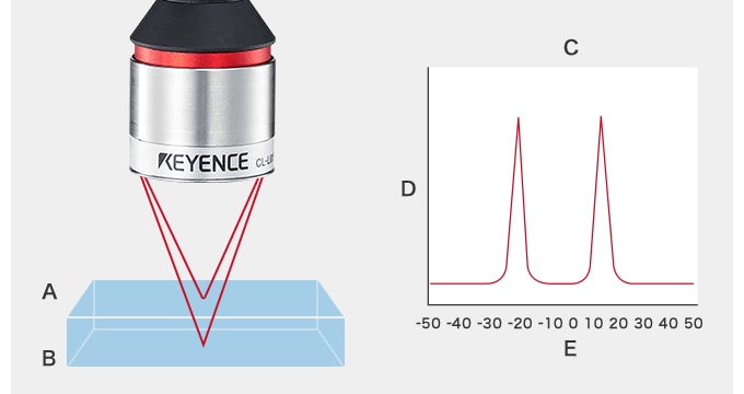 另外可以正確分離並量測厚度15 μm以上的透明體(玻璃、透明膜、透明材料薄膜等)的背面與表面的高度(距離)。