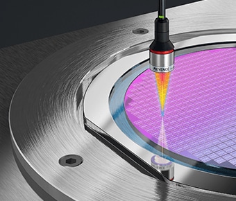 半導體的量產製程中,為了維持精度和品質,必須維持自動製程裝置的精度。特別是晶圓自動設置時存在傾倒或高度不正確時,會極大影響製程的品質。而藉由在裝置內部導入超小型感測頭的「彩色共焦雷射位移計」,可以監視裝置內的晶圓的高度異常和傾斜的有無。