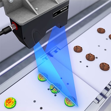 除了有使用點雷射掃瞄量測的1D雷射位移計以外,還可以提供掃描「面」捕捉形狀,之後抽取截面形狀組成3D圖形的3D雷射位移計。