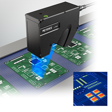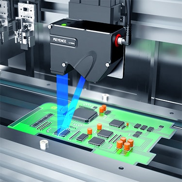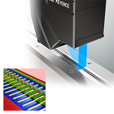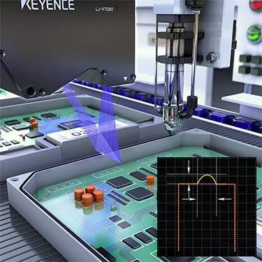 傳統量測方法是利用單點雷射位移計掃描後量測。LJ-X系列採用線雷射,無需移動感測頭就能量測載體與印刷電路板的段差。無需停止傳送即可量測,因而可大幅縮短檢查時間。