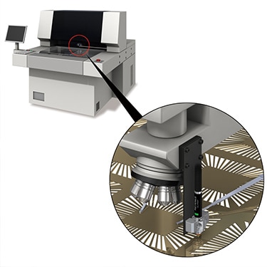 檢查接合後元件的傾斜。CL-3000 系列採取了可進行同軸量測的彩色共焦方式。無論目標物為鏡面、粗糙面,都可用同樣的安裝方法進行量測,達到簡單又高精度的檢查。