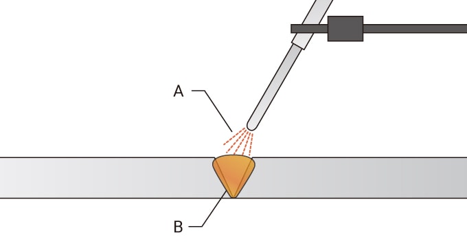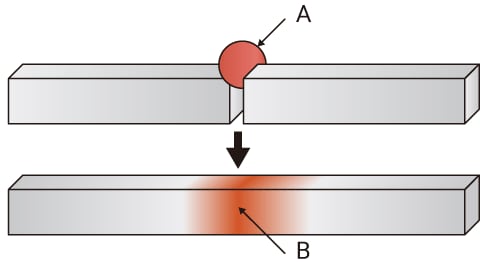 熔焊中,將母材和填料材或是其中任意一方熔化進行焊接。
