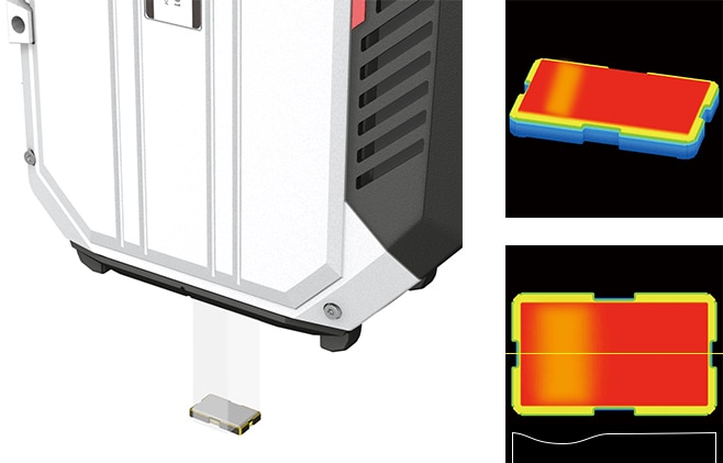 可以瞬間檢測密封小型石英振盪器的蓋子的高度是否存在偏差(接合不良導致的蓋子浮高或傾斜),因此可以在不拖慢生產線速度的情況下實現高精度的接合檢查。