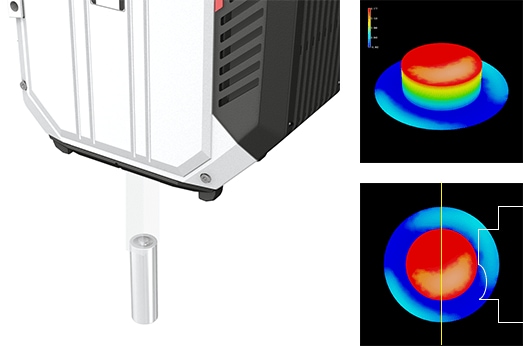 3D干涉式位移感測器「WI-5000系列」可以在短短0.1秒內量測8萬點高度資料。換言之,可以瞬間量測「面」而非點。並且,不會產生以往1D位移計中的死角問題,因此可以支援各種形狀的工件的線上檢查。