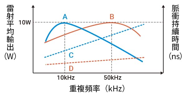 雷射平均輸出/重複頻率/脈衝持續時間的比較