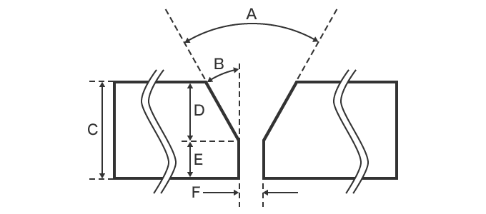 坡口的形狀對於焊接難易度、強度以及焊接量等有很大影響。坡口加工使用切削機進行,但如果坡口角度、根部面間隙、背墊板的間隙等不適當,可能導致焊接缺陷。