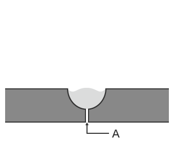V形坡口從加工好的槽上方焊接。因此,電弧貫通至背面,板的背面也被焊接。出現在背面的焊縫稱為「熔透焊道」。但是板的表面凹陷,所以為了獲得足夠的強度,進行第2層焊接。由此完成了全焊透焊接。