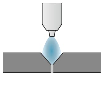 坡口焊接在焊接線比電弧焊更狹窄的雷射焊接中同樣有效,可實現更狹窄的焊接線和更低輸入熱量的焊接,並減少母材的變形和應力殘留。另一方面,與角焊相比焊接線更為狹窄,因此坡口加工和焊接時的仿形控制中要求更高的精度。