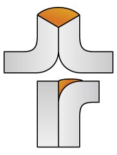 - 有「T接頭」、「十字接頭」、「角接頭」等幾乎垂直相交的2個母材面連接形成的三角形狀的焊接。
