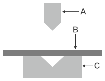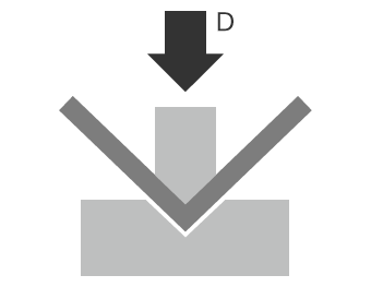 在板厚較厚時,可以使用被稱為“R 沖頭模具”的上模和即使在普通 V 型彎曲中也具有深槽的凹模(下模)。如果彎曲 R 的值很大,可以一點一點地移動板材以形成 R,或者可以使用稱為“半徑尺”的沖頭將板材彎曲到設定的 R。