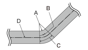 - 令彎曲線和輪廓線的不一致可防止材料因彎曲而伸出不足並變得容易開裂。