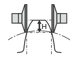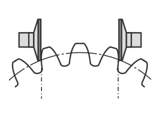 弦齒厚是指在節圓上,兩側齒面相對稱兩點的弦長。在弦齒厚法中,會使用齒厚遊標卡尺、齒厚分厘卡或齒形卡尺來量測相當於齒高(H)部分的厚度。這雖是自古以來便使用的方法,但結果會因測頭的接觸狀況而異,不易確保高精度。
