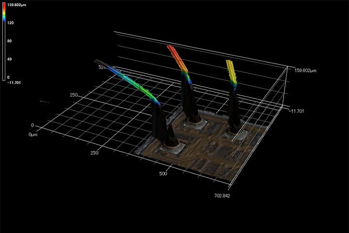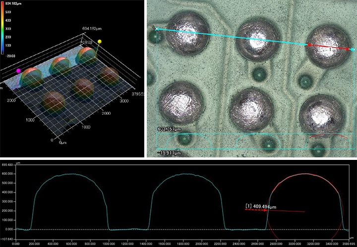 隨著第五代移動通信系統(5G)的普及,半導體器件的小型化和高集成化不斷進步,對產品檢查和分析的需求也越來越大。最新的“VK-X系列”除了可進行重複量測、在同一樣品中記錄多個部位並自動量測的教學批量分析外,還可通過製作範本進行OK/NG判斷。在此,我們介紹藉由雷射顯微鏡檢查案例多的BGA、打線接合、接觸探針等技術資訊和檢查用途案例。