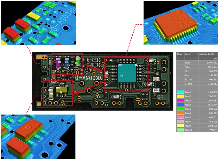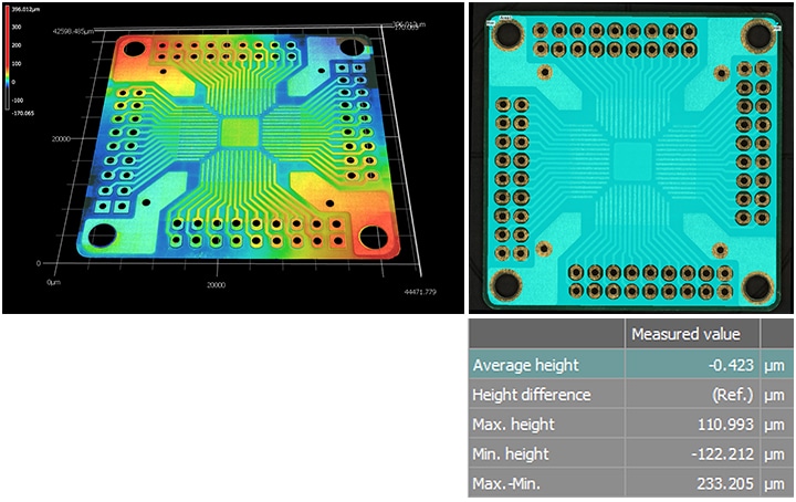 近年來,隨著智慧型手機、平板電腦、穿戴式裝置的小型化、薄型化、高功能化,印刷電路板和零件也趨於小型化、高密度化、多層化,對產品檢查分析的需求日益增加。最新的“VK-X系列”除了可進行重複量測、在同一樣品中記錄多個部位並自動量測的教學批量分析外,還可通過製作範本進行OK/NG判斷。在此,我們將介紹與PCB/印刷電路板貼裝的相關技術資訊以及使用形狀分析雷射共軛焦兼白光干涉顯微鏡的檢查案例。