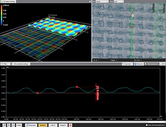 如果是細緻的凹凸情形,就幾乎可以說是無法透過肉眼來評估凹凸的均勻性。串聯式的檢測可以判斷板材的粗略形狀、傷痕、折疊、皺紋、異物等,但不適用於細部測量細微凹凸的高度和深度。