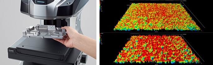 與傳統的測量儀器不同,可以測量散佈在廣闊面積的紋理的高度參數,這在過去需要花費大量的時間和精力。此外,配備了一個測量工具,可以讓您輕鬆進行各種測量。即使是沒有經驗的用戶,也可以在不依賴個人技能的情況下輕鬆、即時地進行測量。