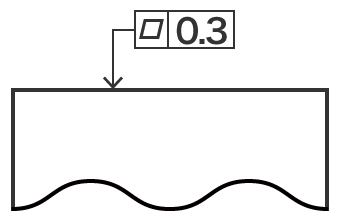 平面度被定義為「平面形狀偏離幾何正確平面的程度」。在圖面上是這樣表示的: