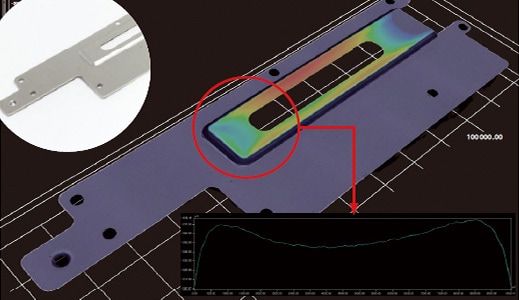 使用「VR系列」,高速3D掃描可以在不接觸的情況下,立即測量對象物的準確3D形狀,例如:翹曲等。