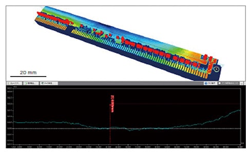 使用「VR系列」,即使是實裝後的電路板也可以放在載物台上,可以在1秒內以非接觸方式掃描整個形狀,了解電路板全體的翹曲情形,並瞬間掌握實裝零件的翹起狀態。此外,由於可以取得任何位置的外形輪廓資料,例如:缺陷部位,因此可以快速取得有關形狀變化的詳細資料。