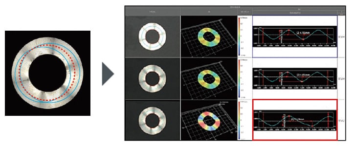 - 由於捕捉表面,因此可以鎖定整個對象物的翹曲部分並測量任何部分的外形輪廓。