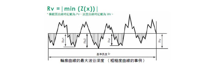 最大波谷深度(maximum profile valley depth)(Rv、Pv、Wv)