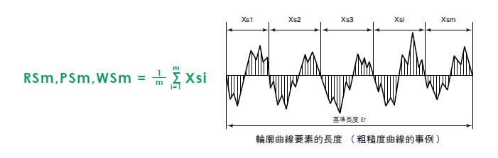 輪廓曲線要素的平均長度(mean width of the profile elements)(RSm、PSm、WSm)