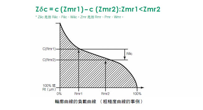 輪廓曲線的橫斷程度差(Zδc)表示的是在被給予的2 個負載長度率一致高度方向的橫斷程度c 的差。