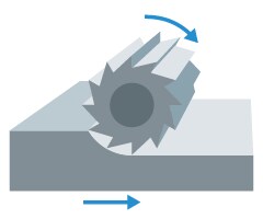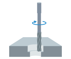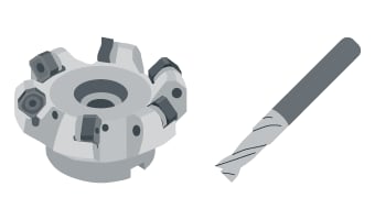 旋轉名為銑刀的工具進行切削。銑刀是指切削加工物表面和溝槽等的工具,大致可以分為對表面進行加工的平面銑刀和對溝槽等進行加工的端銑刀。