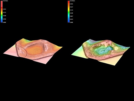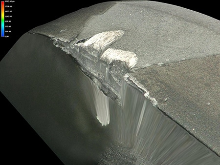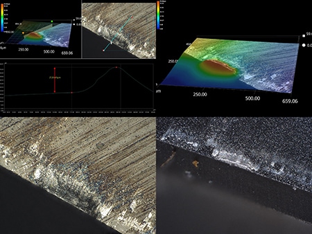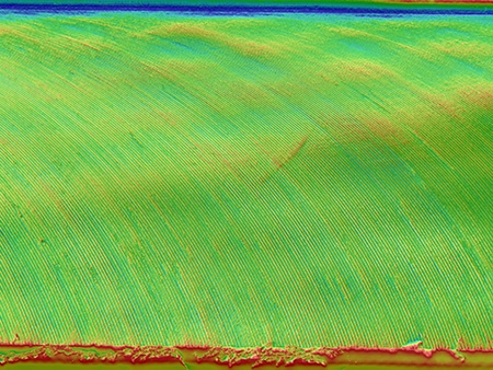以往只有使用干涉儀才能觀察到的切削面的起伏,現在使用Optical Shadow Effect Mode,只需幾秒鐘即可作出評估。