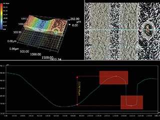 精準掌握表面粗糙等不良,進行定量評估外,還能利用報告功能合併影像和數值,瞬間完成報告。1台即可完成全程作業,大幅縮短作業時間。