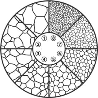 多數情形下,結晶粒的分析採用「比較法」目測檢查。一般根據以下方法推斷結晶粒度。