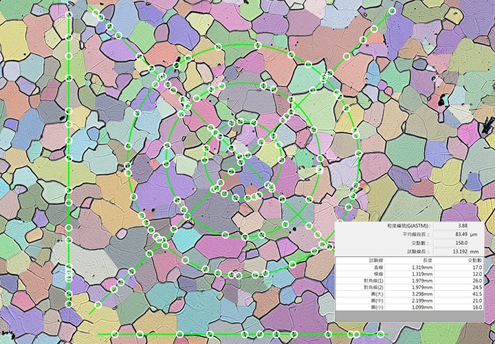 分析金屬組織的結晶粒度,有助於檢查與評估金屬材料的機械性質是否符合目的。一般會先準備金屬組織樣本進行「粒度分析」,用金相顯微鏡調查結晶粒度和結晶粒分布。