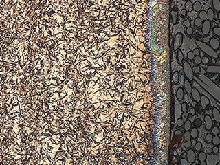 用顯微鏡觀察經過上述製作過程,正確製作的試料研磨面。放大組織,巧妙調整焦距,觀察輸入熱造成的組織變化。但非金屬夾雜物或石墨球化、鐵氧體、波來鐵等面積率等高水準的量測,就必須改用專用軟體。