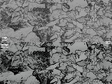使用一般的數位顯微鏡做組織觀察,常因解析度不足,不易觀察淺色的金屬組織。4K數位顯微鏡「VHX系列」配備的「HDR(High Dynamic Range)功能」, 可取得多張不同快門速度的高灰階影像。使以往因解析度不佳難以觀察的細部組織也有高精細、高對比的影像觀察。