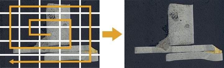 使用「VHX系列」的影像連接功能,只需一鍵即可高速且無偏移的連接視野,取得最高50000 × 50000畫素的鳥瞰影像,不須犧牲倍率與解析度,實現有效率的觀察。