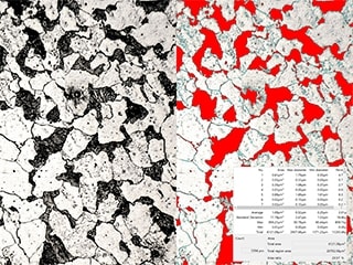 以往的顯微鏡無法透過面積率,定量熱處理後的鐵氧體或波來鐵的品質。