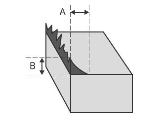 - 塌角:因材料表面受到拉扯而變得平滑的面。