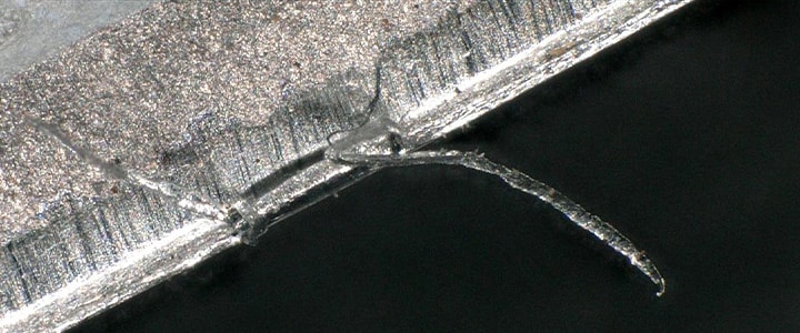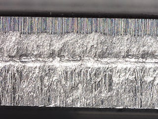 如果以一般顯微鏡來觀察立體且細微的毛邊,卻只能對焦於一部分,很難透過整體影像同時且清晰地觀察找出成因時十分重要的毛邊根部與尖端。
