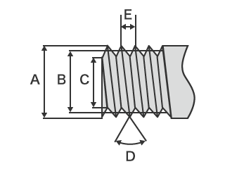 - 底徑 外螺紋/內螺紋的螺谷之間的直徑。