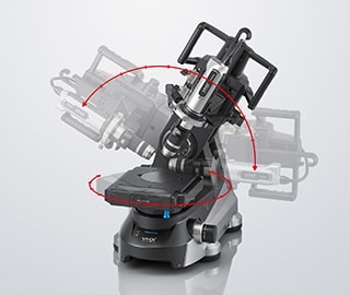 使用「全角度觀察系統」即可輕鬆調整視野、旋轉軸、傾斜軸三軸,實現即使傾斜、旋轉,視野也不會偏移的自動中心性。儘管遇到跟螺絲不良部位一樣立體又細微的觀察對象,也能順暢地進行傾斜觀察。
