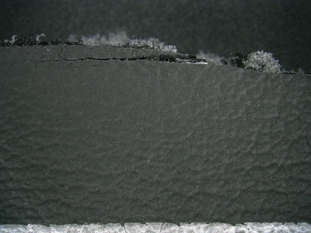 - 對模具母模仁噴覆細微的研磨材,形成凹凸。以研磨材的大小及噴出的強弱控制凹凸的大小。梨皮為代表性圖案。