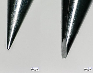 工具由經研磨後的金屬製成,導致工具有強烈的光澤面。因此強烈的反射光造成的光暈會影響觀察、量測。